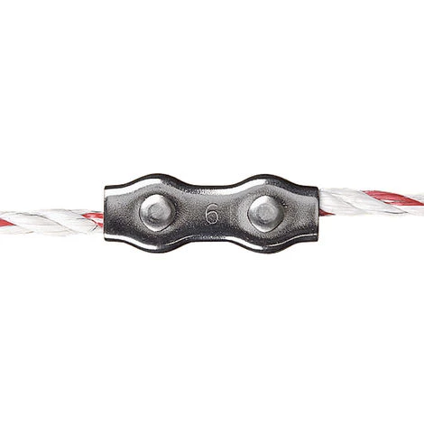 Connecteur pour clôtures permanentes de plus de 500 mètres de long, pour chevaux et bovins. Utile pour créer des subdivisions. Connecteur en acier inoxydable pour câble. Pour des connexions et des joints faciles avec le câble Powerline ou Turboline. Pour connecter le fil, nous vous recommandons d’utiliser le numéro d’article : GH060764 ?10 garantie à vie. Pack de : 4 pièces ou 25 pièces
