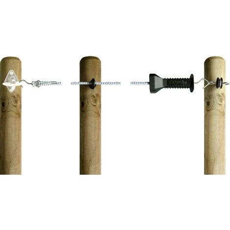 Particulièrement visible et pratique pour les ouvertures de clôture !Câble électrique particulièrement visible, avec lanière élastique. Clôture électrique très pratique, particulièrement pour les ouvertures de clôture. Aucun risque que les animaux ne se coincent les poils ou la crinière. Crochets en acier inoxydable.1 x corde élastique électrifié diamètre 7 mm1 x poignée isolée1 x isolateur annulaire1 x isolateur double ancrage1 x garantie 3 ans