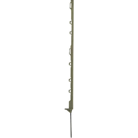 Lot de 10 piquets de clôture de 105 cm de haut munis de 7 isolateurs chacun. Vous pourrez donc mettre jusqu’à 7 rangées de fils électriques par piquet pour vous assurer que votre chien ne passe pas au-dessus ou au-dessous de la clôture. Ces piquets en plastique sont d’excellente qualité et ont subi un traitement anti-UV renforcé, ce qui leur offre une longévité plus grande. Les isolateurs peuvent accueillir tout type de fil de clôture et des rubans jusqu’à 40 mm. La couleur brune des piquets de clôture leur permet de s’intégrer parfaitement dans le paysage pour les rendre quasi-invisibles ! Caractéristiques des piquets pour cloture 105cm : Matière du piquet : Plastique Hauteur totale : 1.05m Hauteur sans pointe : 87 cm