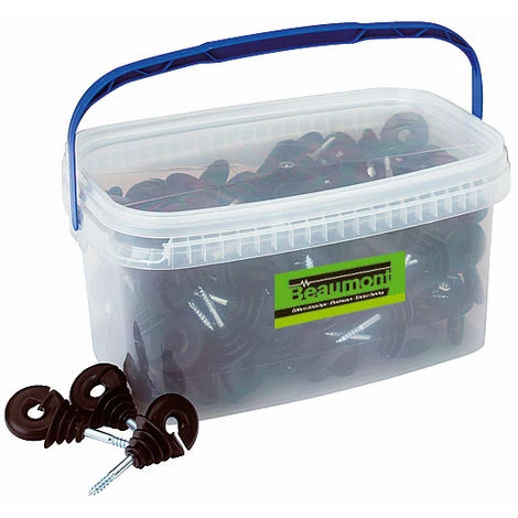 Les isolateurs doivent être de bonne qualité pour empêcher le courant électrique de retourner à la terre par les piquets. Chez Beaumont, les isolateurs sont testés pour résister à des voltages de 10000 à 20000 V et permettre à votre clôture de garder toutes son efficacité. Couleur : noir Quantité : seau de 90 pièces.