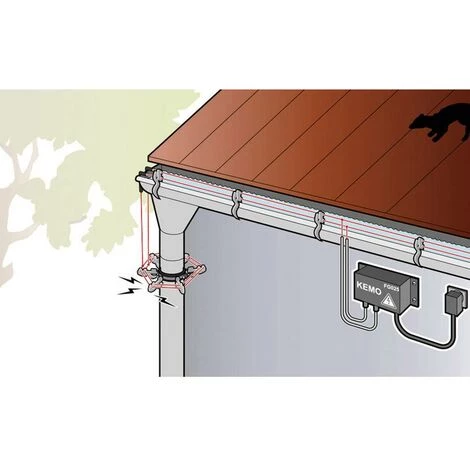 Electrificateur de clôture haute tension à monter sur des gouttières et des descentes d’eaux pour empêcher les martres et les ratons laveurs de pénétrer dans les maisons. Les animaux escaladent souvent les descentes d’eaux et au dessus des gouttières pour se nicher dans les combles. Un choc électrique de cet électrificateur bipolaire devrait éliminer efficacement les animaux. Cet appareil peut être utilisé comme clôture électrique ou pour protéger les animaux des sources de danger.