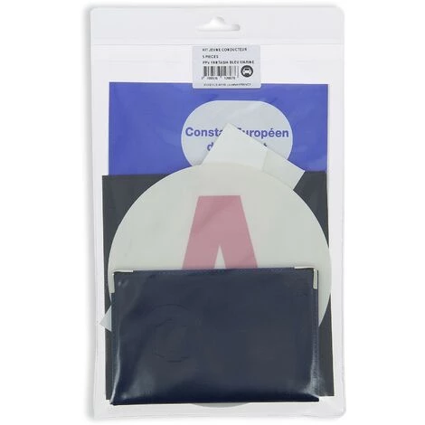 Kit complet pour jeune conducteur Contient : – Etui porte papier voiture en PVC, pour carte grise + assurance + permis de conduire (nouveau format carte de crédit) – Constat amiable – Vignette adhésive pour pare-brise, pour contenir l’attestation d’assurance + ticket de parking – Disque de stationnement classique – Disque A jeune conducteur électrostatique