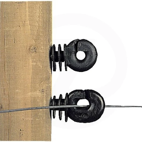 Caractéristiques techniques: Aucun noyau en fer Aucun risque de court-circuit Pour ruban de 12,5 mm sur piquets de clôture en bois Pour chevaux, vaches, moutons et gibier Résistant et solide Garantie de 2 ans Noir Convient pour le type de conducteurs: Corde Fil métallique Bande Quantités par emballage: 100 pièces
