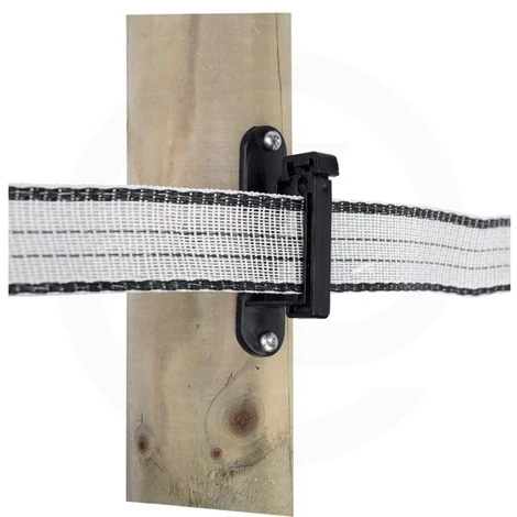 Caractéristiques techniques: Pour fixer facilement des cordons d’une largeur de 20 à 40 mm à des piquets de clôture en bois Noir Convient pour le type de conducteur: Corde Bande Quantités par emballage: 125 pièces
