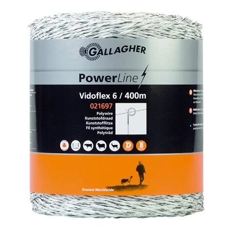 Rope Flowline avec 6 conducteurs en acier inoxydable _pais, ce qui vous donne une conductivit_ optimale. Pour cl»tures portables. Rouler avec 400 m de chrodon. 6 pilotes de fils de 0,20 mm.Ù Inox. 3,8 ohm / m de r_sistance. 80 kg de chargement de la rupture. 2,5 mm de diamtre. Composition: cordon de nylon avec 6 fils de conducteur en acier inoxydable. Pr_sentation: rouleau de 400 m