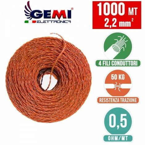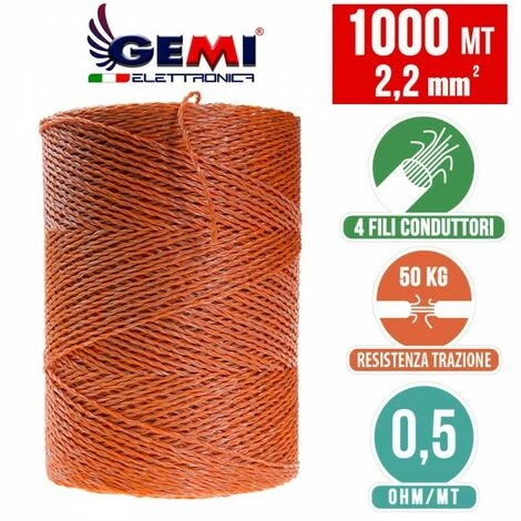 - Gemi Elettronica FIL DE CLÔTURE ÉLECTRIQUE clôture électrifiée – 1000 mt 2,2 mm² 0,5 ohm/h