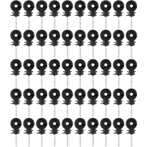 HEGUYEY 50 Pièces Electrique Isolateur De Clôture Avec Accessoires De Système De Grille à Visser Et à Anneau Pour L’élevage Des Animaux Clôtures Agricoles Electroniques Utilisées Sur Le Poteau En Bois Noir