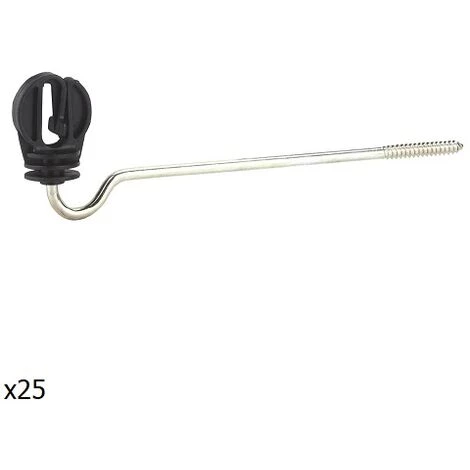 Isolant pour une bande de 20 mm. Indiqu_ pour tre plac_ comme support de bande sur les cl»tures _lectriques. Il comprend un m_canisme š vis qui permet la fixation de l’isolant sur des poteaux en bois. Mesures: isolant avec couplage de 22 cm. Pr_sentation: sac 25 unit_s.