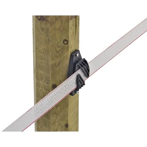 Isolant pour une bande de 20 mm. Indiqu_ pour passer comme support sur les cl»tures _lectriques. Il comprend un m_canisme š vis qui facilite son application dans le bois. Pr_sentation: sac 10 isolateurs.