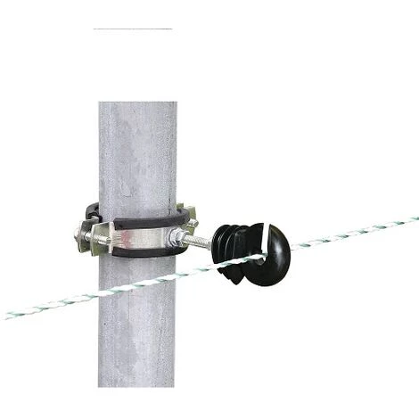 Pince en forme d’anneau pour contenir des isolateurs et des pasteurs en boîtier _lectrique. Cette pince sert pour des poteaux ronds de 35 š 70 mm, ce qui le rend trs polyvalent. Il a une incrustation du caoutchouc de meilleure qualit_ pour _viter d’endommager les p»les, de les prot_ger et de les faire durer plus longtemps. Cette pince, sert d’isolateurs avec fil m_dical M6. Pr_sentation: 1 pince