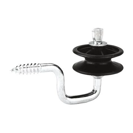 Isolant pour les pasteurs _lectriques et cl»tur_s de bovins d’_laboration renforc_s. Vissement de l’isolant dans des poteaux en bois situ_s dans les coins de la cl»ture. Compte tenu de sa forme circulaire, il permet au cŠble de transformer en angle. Roll complet avec support incurv_ stable de 7 mm de long. Isolant rotatif. Pr_sentation: 1 unit_