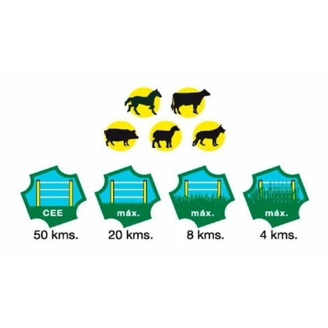 - Longueur de clôture maxi avec forte végétation : 6 Km