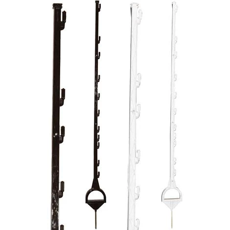robustes pour le pâturage mobile ou semi-permanent des chevaux, bovins, chèvres, moutons et gibier. Piquets à onze isolateurs numérotés pour sangles jusqu’à 20 mm, corde et fil.