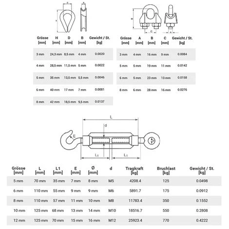 - Notre gamme comprend également d’autres sets de câbles métalliques de différents diamètres et constructions, ainsi que les accessoires appropriés tels que des serre-câbles, des cosses, des tendeurs, des crochets et bien d’autres produits.